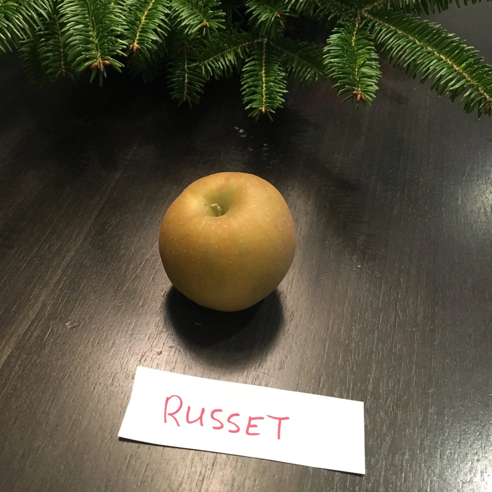 It’s an old variety, and often recommended for use when making cider. The skin is russeted, giving it a distinct appearance from the other apples in our family apple tasting.