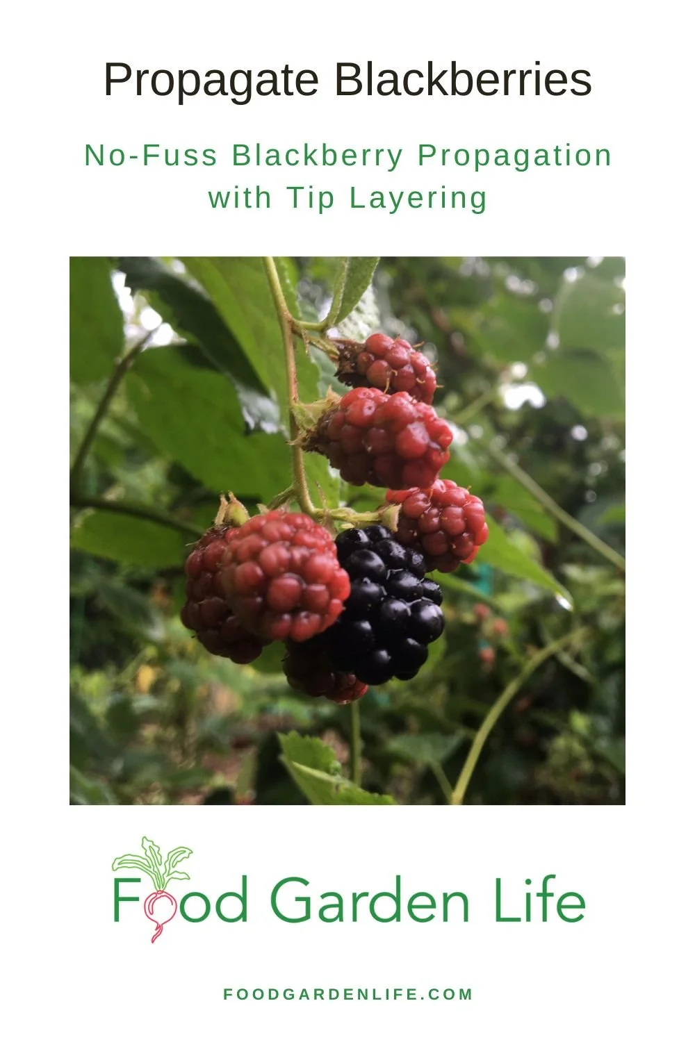 Once the tip of the blackberry cane touches the ground, it will grow roots. When the roots are well developed, you can cut the cane to detach it from the parent plant, and you now have a new blackberry plant.