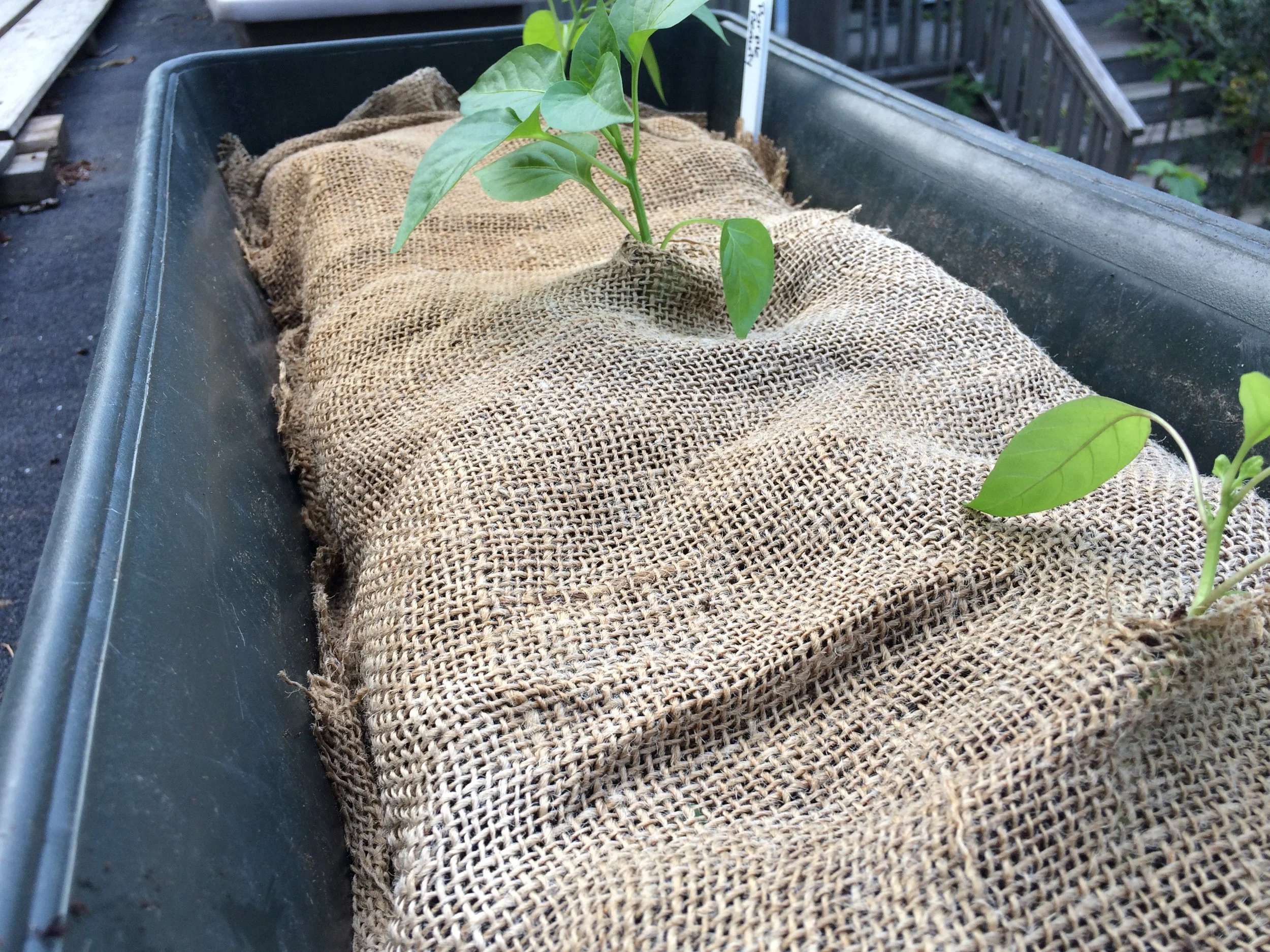 Mulch It. Same idea as the burlap above, but use a plastic mulch film over the soil, either in the garden or in your planters. I don't care for the appearance of the black biodegradable plastic mulches, but they do help cut back on digging. They also hold in soil moisture.