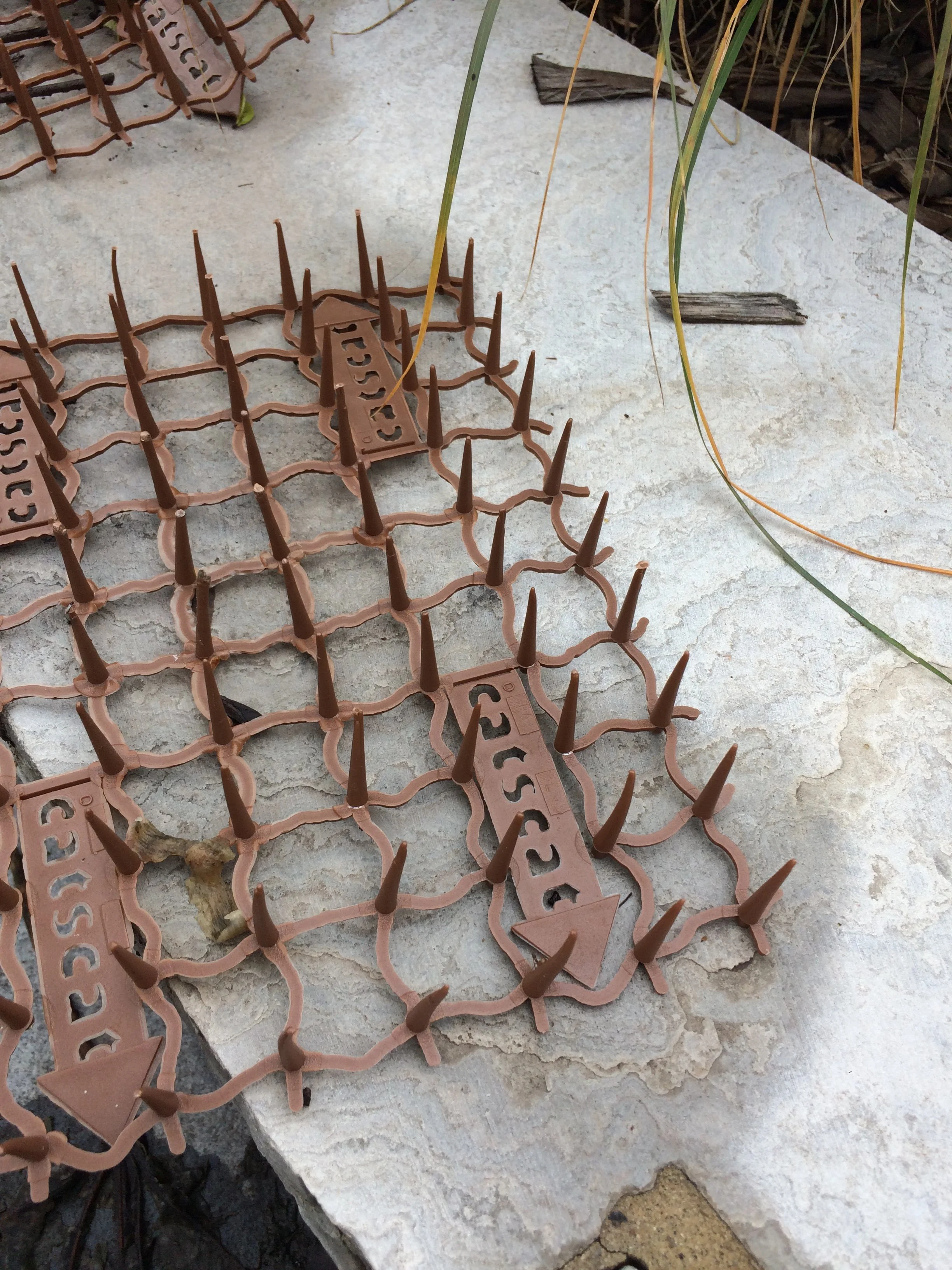 This sort of spike mat is often used to deter pigeons, but can also make it difficult for squirrels to launch themselves towards somewhere you don’t want them, such as a bird feeder.