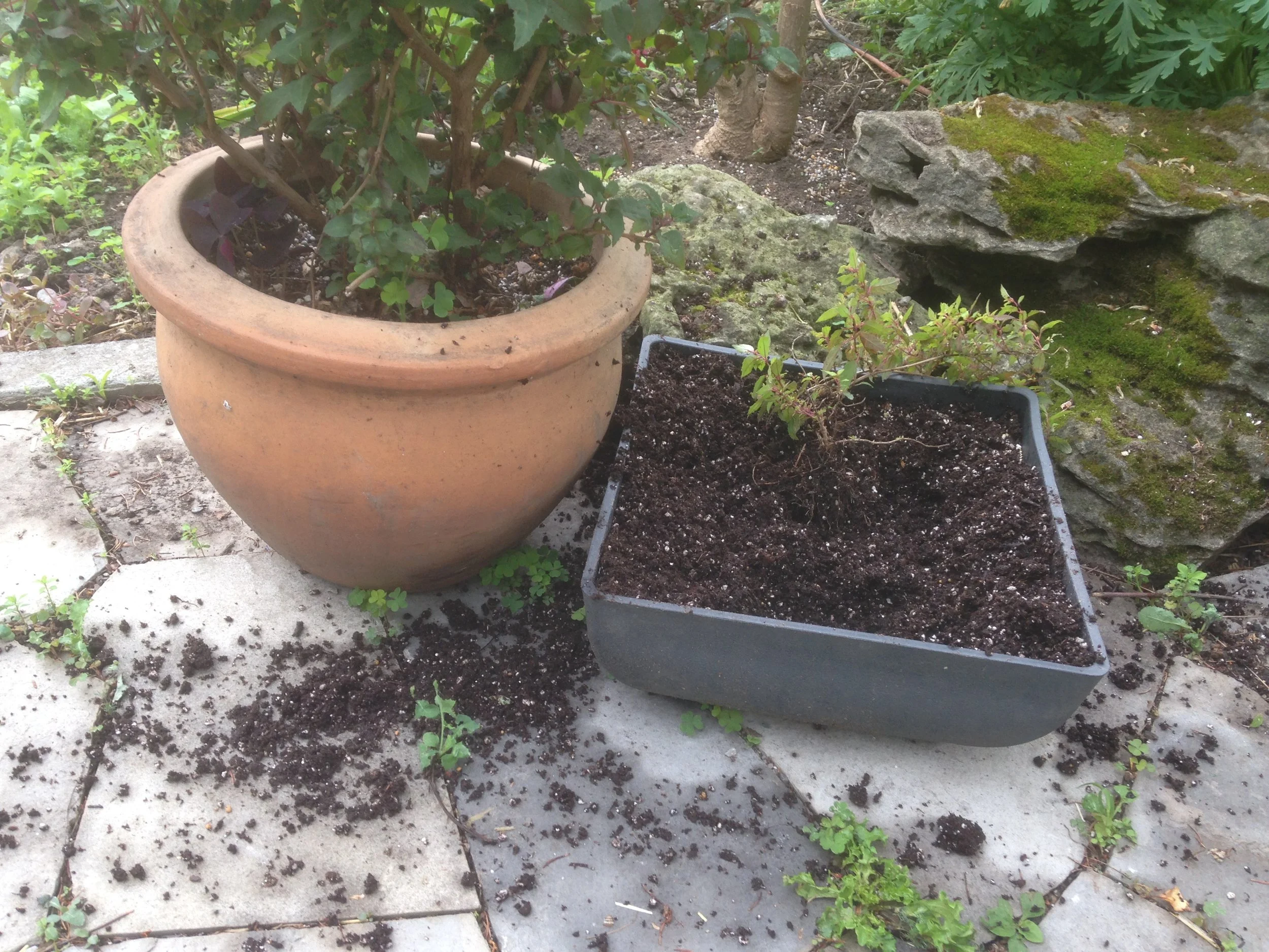 Flower Pots Repurposed. Same idea as the trays, above, except suited to a smaller area.
