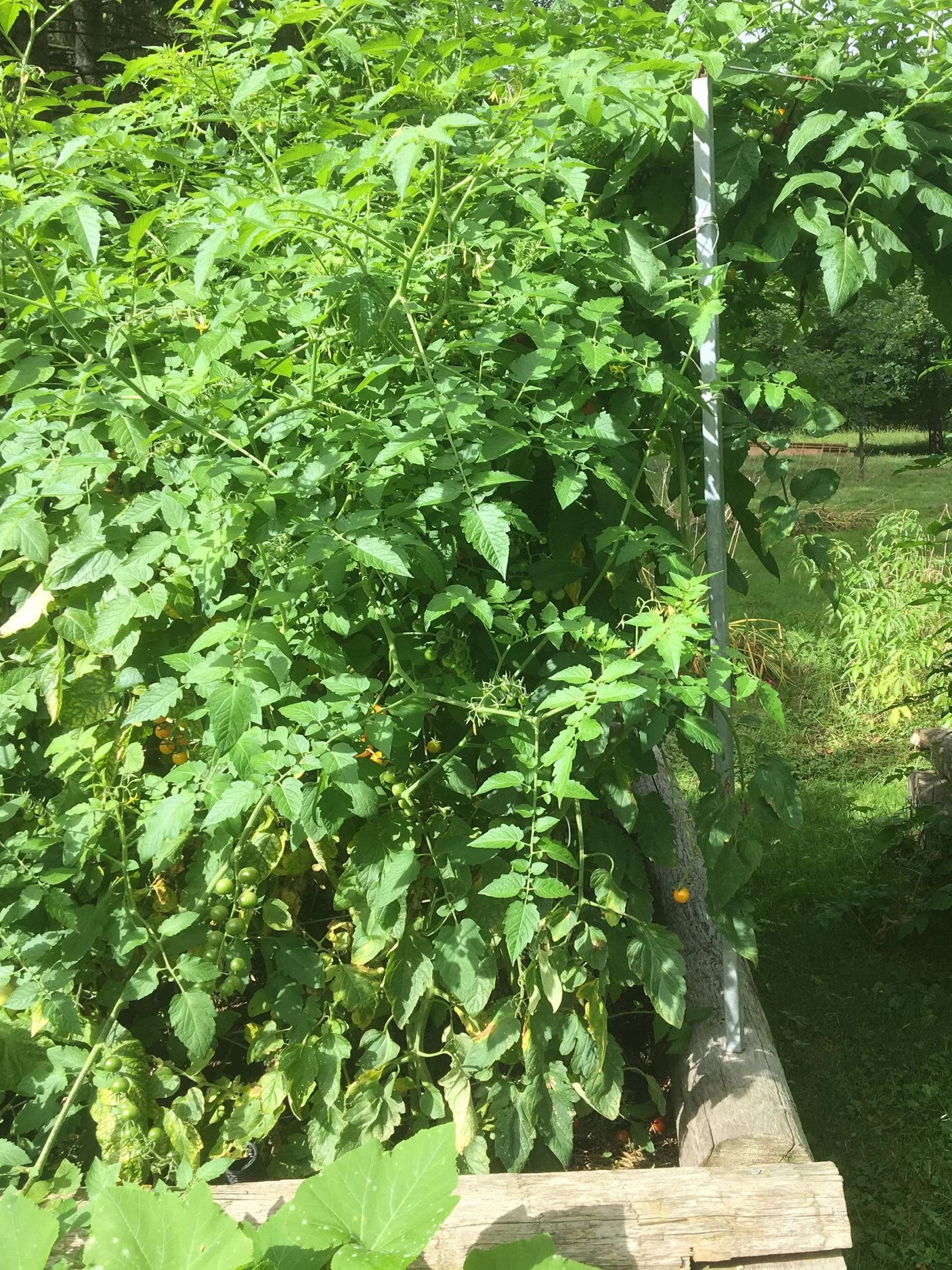 But with those little scorchers harvested, I left the pepper plants. They had dark green leaves and compact form. Nice bedding plants nonetheless. Just not next to the sidewalk.