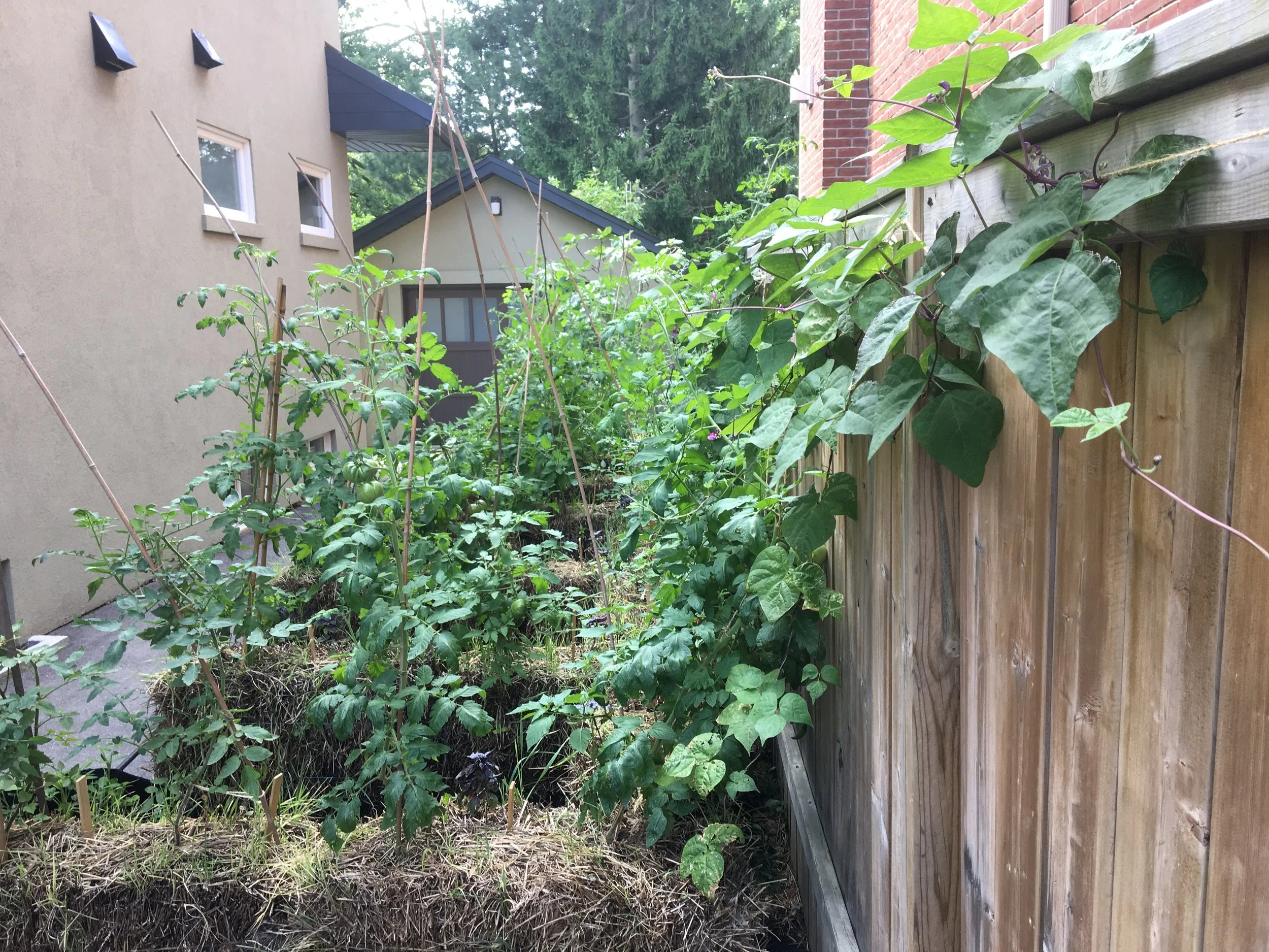 The peppers were the finishing touch in my front-yard edible landscape. Right by the sidewalk. A nice pop of colour.