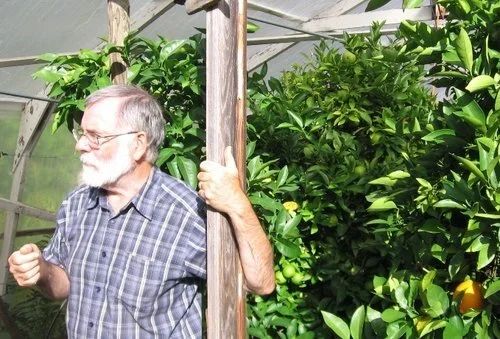 Bob lives in the Pacific North-West region of North America, which has a moderate climate. To get his sweet citrus to ripen, he uses an unheated greenhouse. The greenhouse is for additional summer heat — not because of winter hardiness!