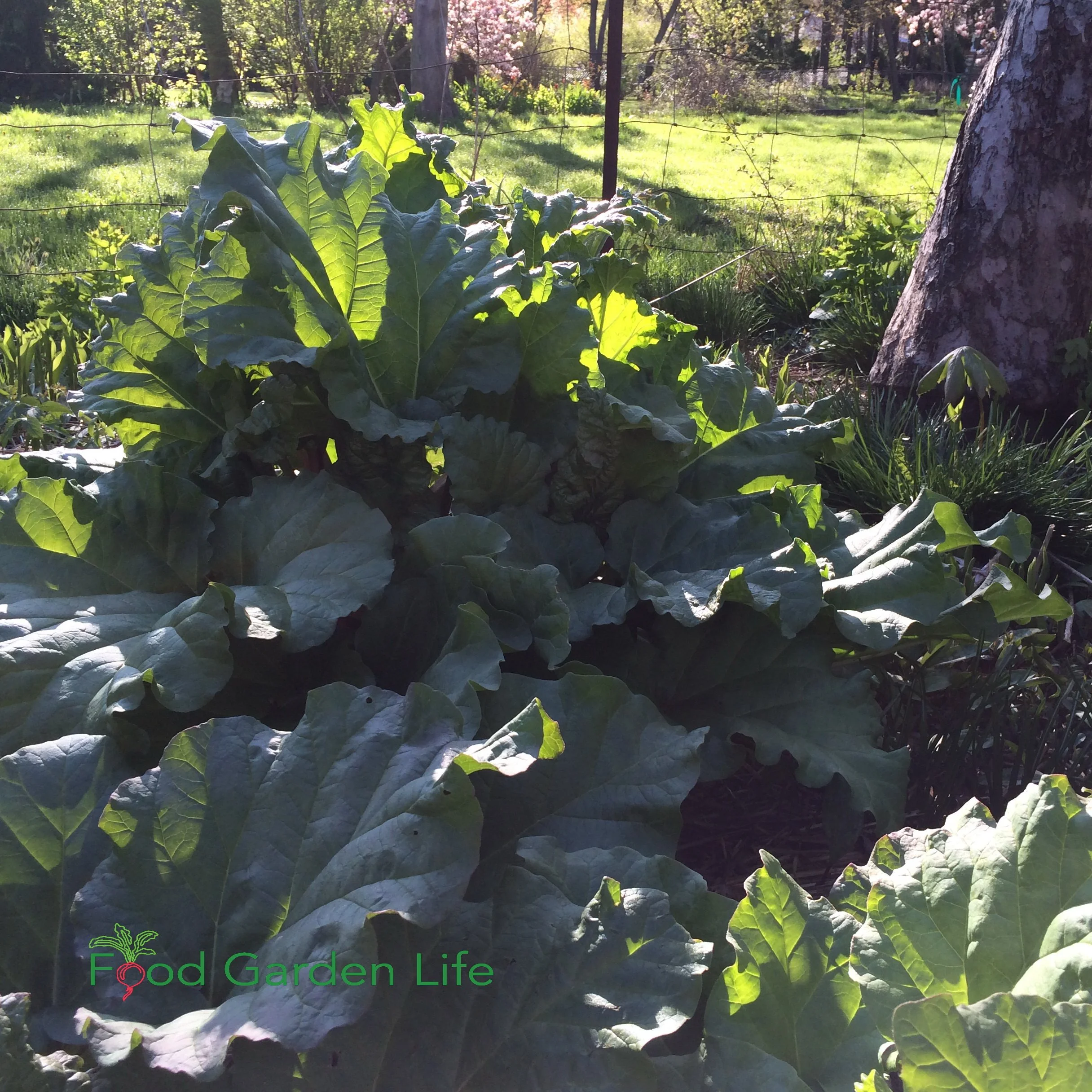This rhubarb plant is in partial shade, but I’ve seed decent rhubarb patches even in heavy shade.